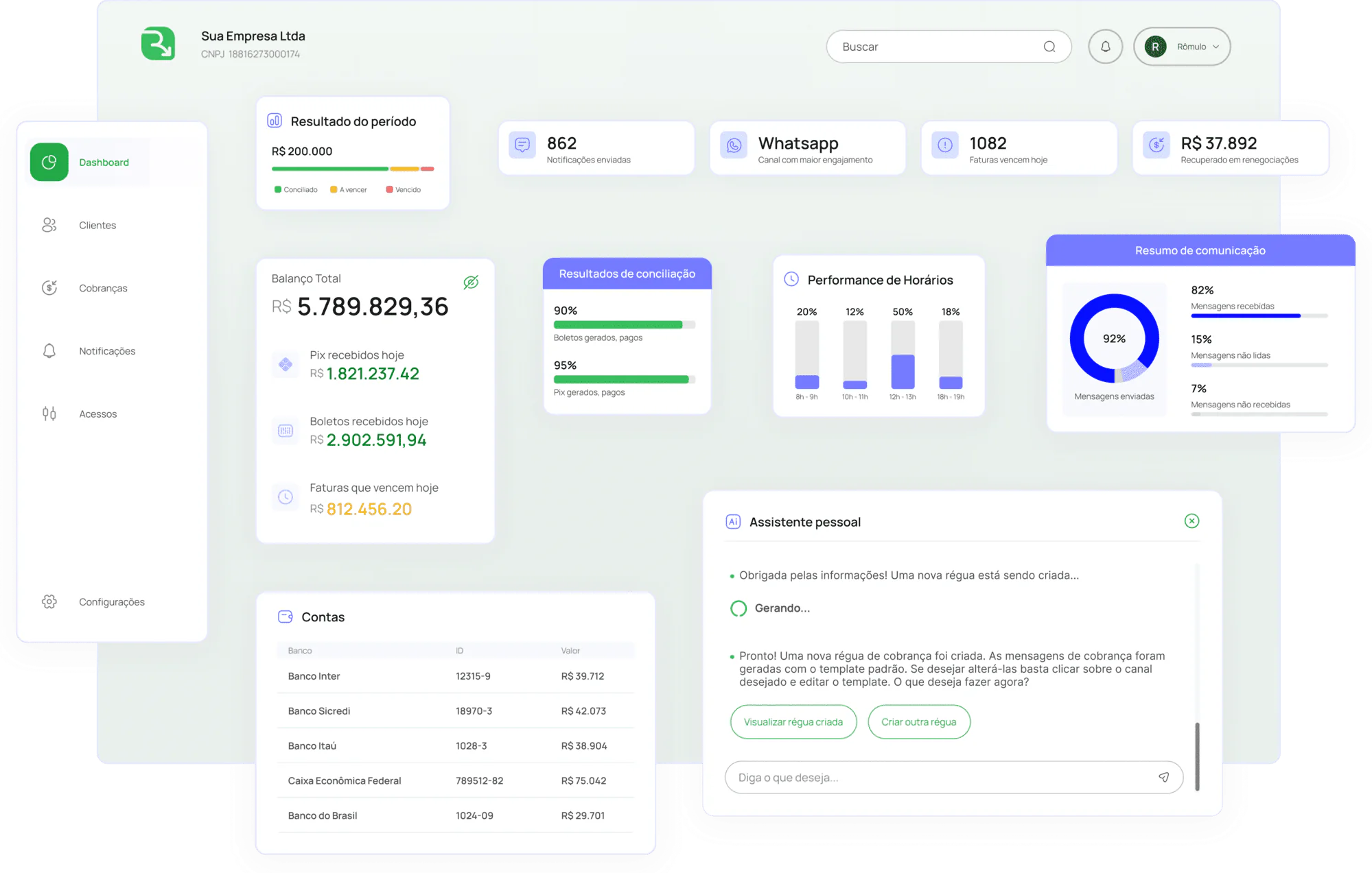 Você passa a ter controle total sobre indicadores, metas, resultados e tendências, com visualização clara e acessível em qualquer dispositivo.