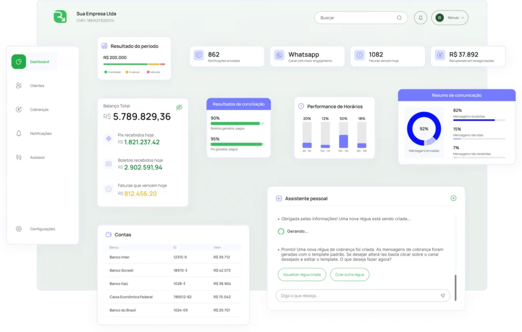 Você passa a ter controle total sobre indicadores, metas, resultados e tendências, com visualização clara e acessível em qualquer dispositivo.